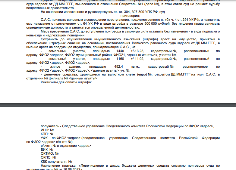 Судебный процесс особо тяжких преступлений ст. 291-290 УК РФ. группой лиц по предварительному сговору или организованной группой; вымогательство взятки в крупном размере от 200 тыс.